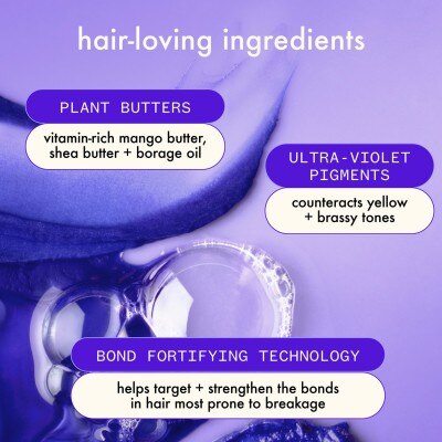 - Massage a quarter-sized amount of Bust Your Brass Shampoo through wet hair focusing on the roots. Rinse.