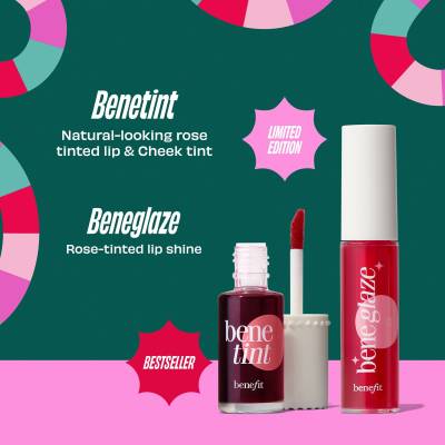 Feeling lucky? Roll this pink, fuzzy dice and let chance decide your rosy reward. Will it be Benetint, the sheer, buildable rose tint we all know and love, or NEW limited-edition Beneglaze to bring glazy good luck and a nourishing high-shine finish to your lips? Or...maybe both? Give it a shake, make your move, and no matter the roll—you're guaranteed to be a rosy winner.