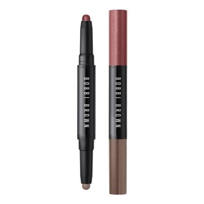 To shade and define, swipe the matte shade across lid and lash line, and then blend. Tap the shimmer shade onto inner corner and center of lid to highlight and add dimension.