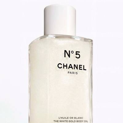 N°5 The White Gold Body Oil can be generously applied to the body to provide long-lasting moisturisation and prolong the trail of the fragrance. Its enveloping formula lights up the skin with a white-gold glow.