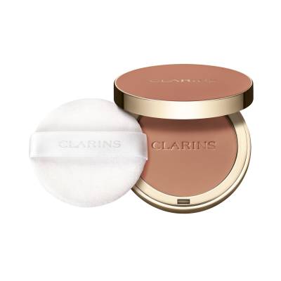 Use the Clarins sponge to sweep over the face and neck. Or for a lighter coverage, use Clarins Powder Brush for lighter application all over.