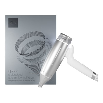 Experience a new era in blow drying with the ghd speed hair dryer in silver white, featuring breakthrough ghd halo dual-airflow technology, uniting power with control for cool-scalp and cool-touch with no heat damage¹.