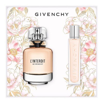 This set contains : EDP 50ml + Travel Size 12.5ml Celebrate Mother's Day with this exceptional gift set by Givenchy featuring L'Interdit Eau de Parfum and a travel spray. This limited-edition gift set is inspired by the Gardens of Le Jonchet, Hubert de Givenchy's secret refuge.