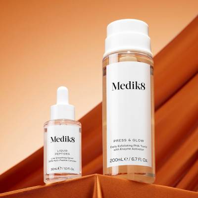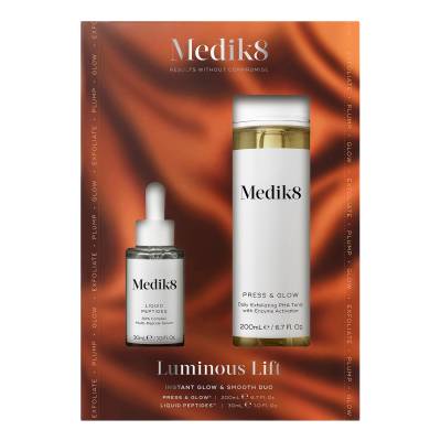 Full Size Press & Glow Uncover fresh, radiant skin with this powerhouse daily duo. Press & Glow gently resurfaces and hydrates for a smoother, more even tone, while Liquid Peptides helps visibly plump and firm, reducing the look of fine lines and wrinkles . The result: skin that feels nourished, refreshed and lit‑from‑within.