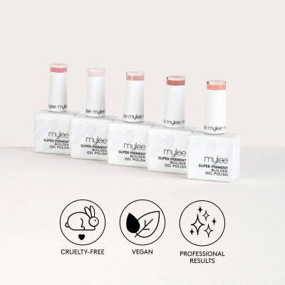 To strengthen, brush on 2 layers of our thick Mylee Super Pigment Builder Gel, curing each layer for 99 seconds using the Mylee Grande LED Lamp* on low heat mode. To build extensions of up to 1cm, attach a Mylee Paper Nail Form* and brush the Builder Gel over the entire nail, extending the tip, and cure for 99 seconds. Repeat this step to build a strong extension.