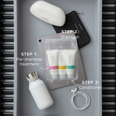 Before shampooing, thoroughly wet hair and apply in sections. Work into hair with fingertips. Cover with a shower cap and leave for at least 20 minutes (the longer the better). Rinse well and follow with the appropriate Philip Kingsley shampoo and conditioner .