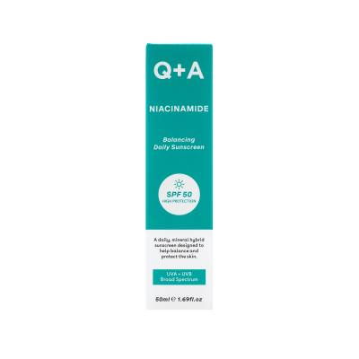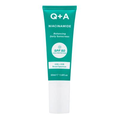 Q+A Niacinamide Balancing Daily Sunscreen works well with Q+A Niacinamide Gentle Exfoliating Cleanser and Q+A Azelaic Acid Balancing Serum for calmer, soothed, and balanced skin.